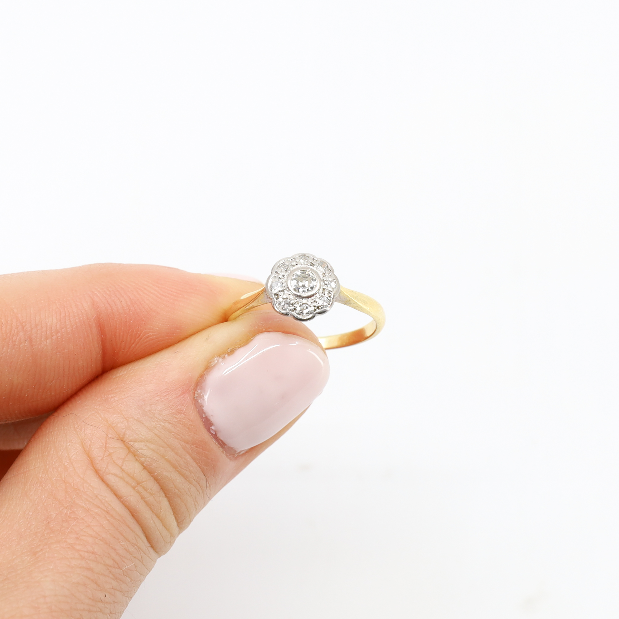 first third of the 20th century. It is set with a diamond in the center, surrounded by smaller ones.