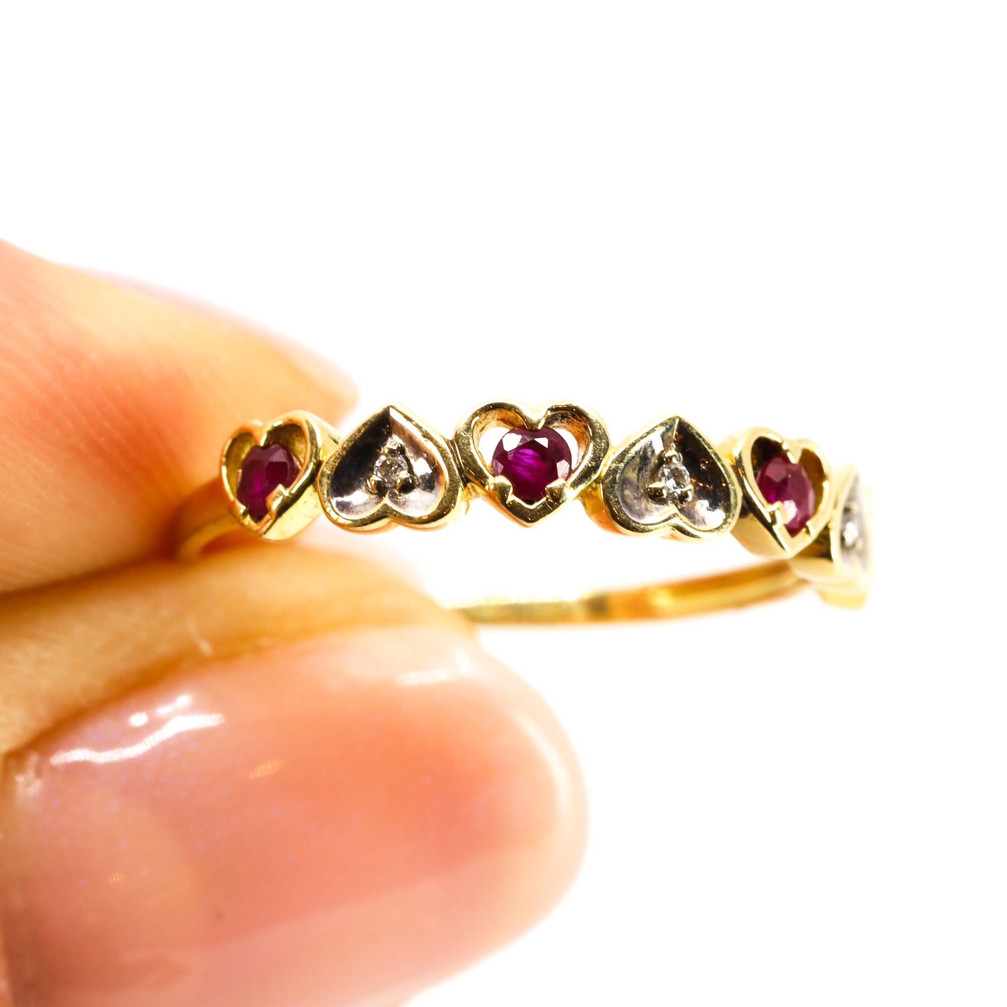 Charming antique ring, 18 carat yellow gold, set with alternating pink rubies and small diamonds,