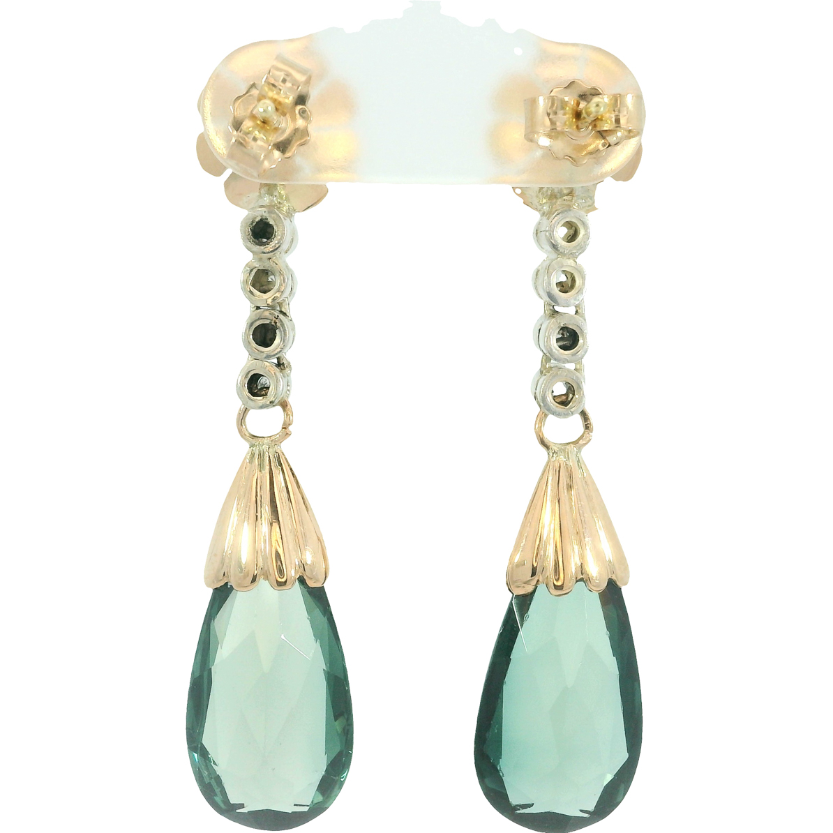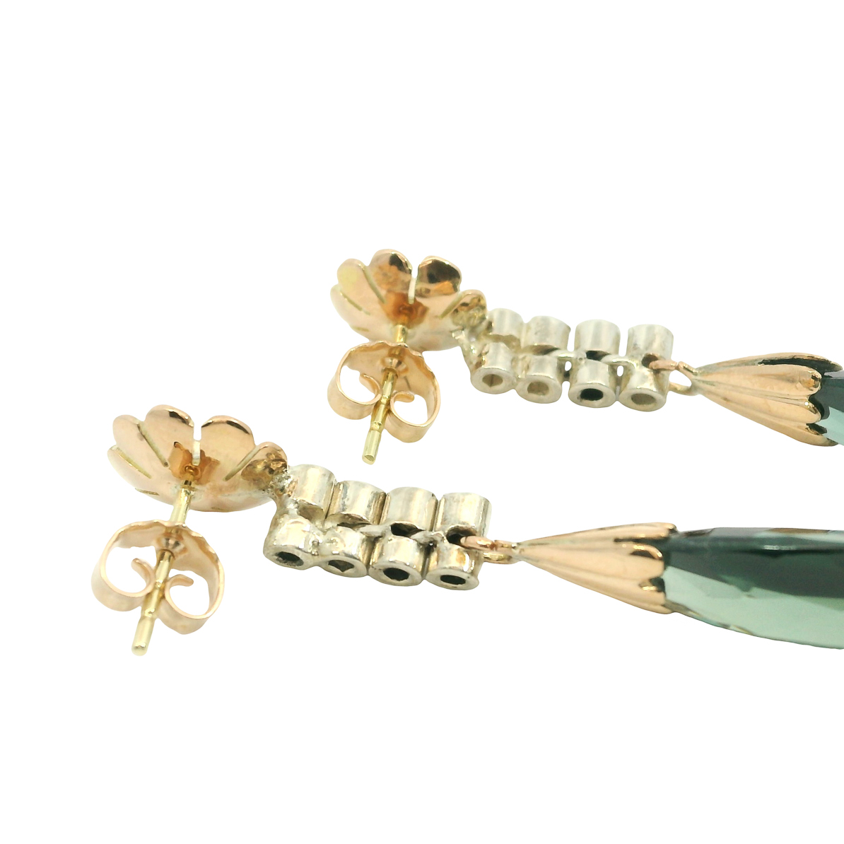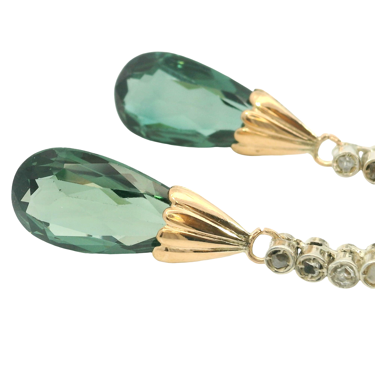 besetzt mit Diamanten im Rosenschliff,nach unten fließender Tropfen, wunderschön geschliffene flaschengrüne syn. Spinelle,