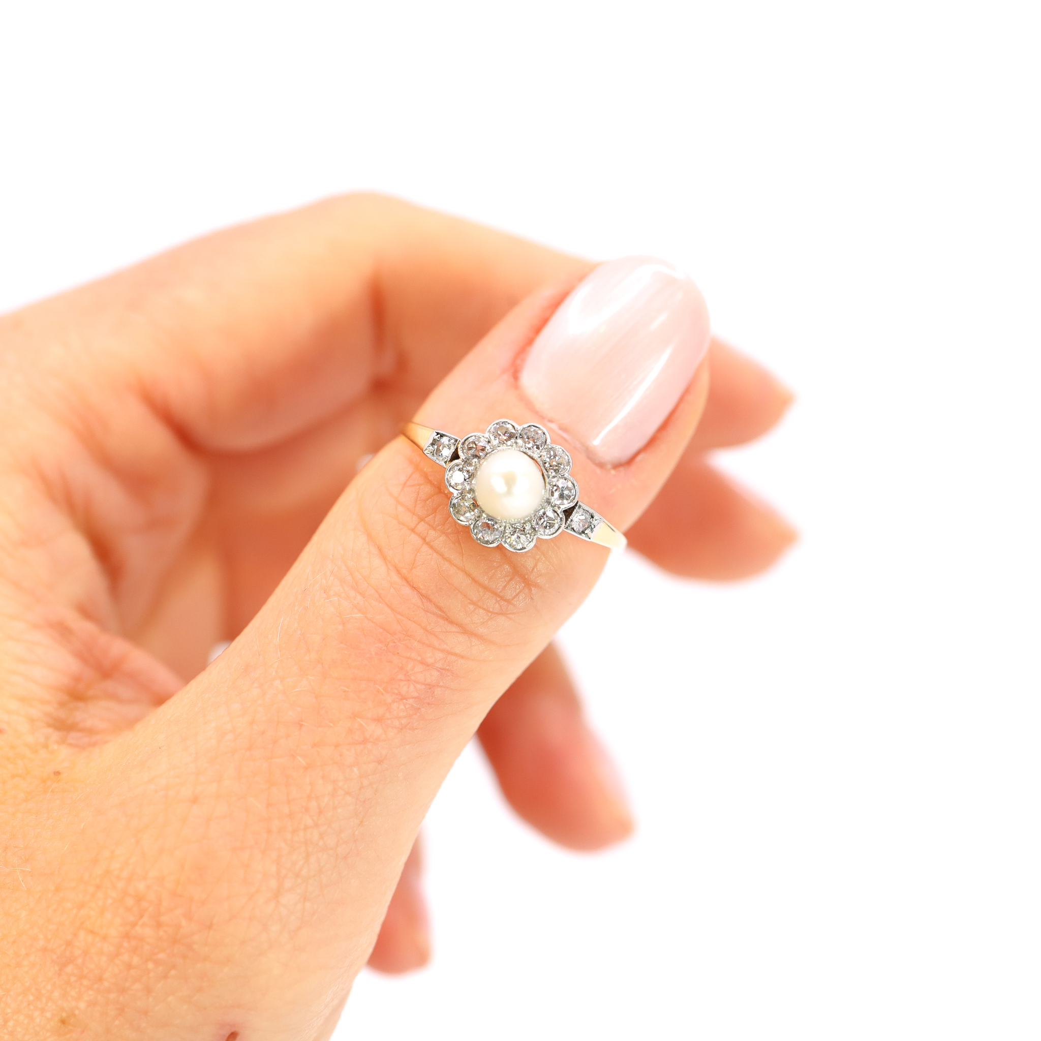 Antiker Blütenring 14 karat GG Diamanten